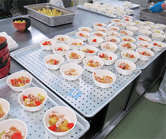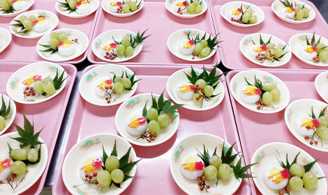 給食事業に携わる社員は約50名ほどで、一般の料理屋・ホテル厨房での経験をもつ社員が多く、それらの経験を生かしながら各施設でパーティー食などの依頼も承っております。