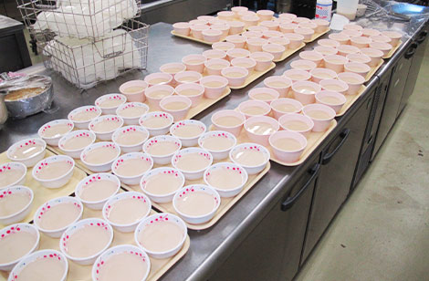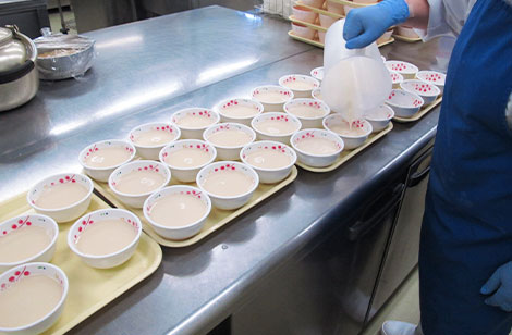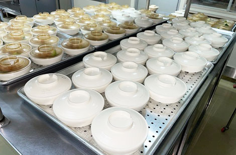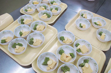 高齢者の嚥下機能に対応し、材料の持つ特性に合わせた調理法の調整を自社で開発しています。